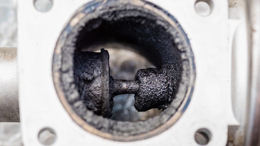 ⚠️ Cause : Accumulation de dépôts (suie et de cendres) qui forment une couche de calamine qui empêchent la vanne EGR de s’ouvrir et/ou de se fermer.
